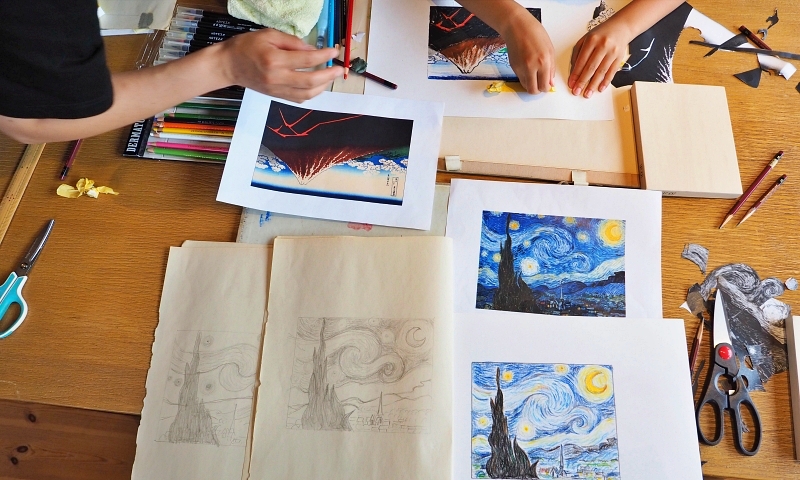 好きな名画を、縦横の比率を変えてリサイズします。パーツを組み合わせたり鉛筆で描いたりしながら、作者の意図を想像し、答えのない問いに向き合います。