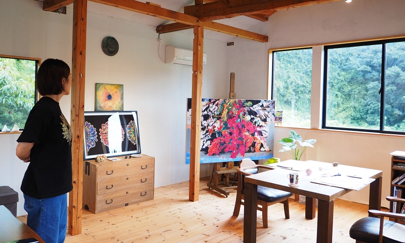 講師で日本画家の頼黄田(ヨリコーダ)さんは、これまでは東京を拠点にアーティスト活動を行っていましたが、今年8月に妙義へ移住。
